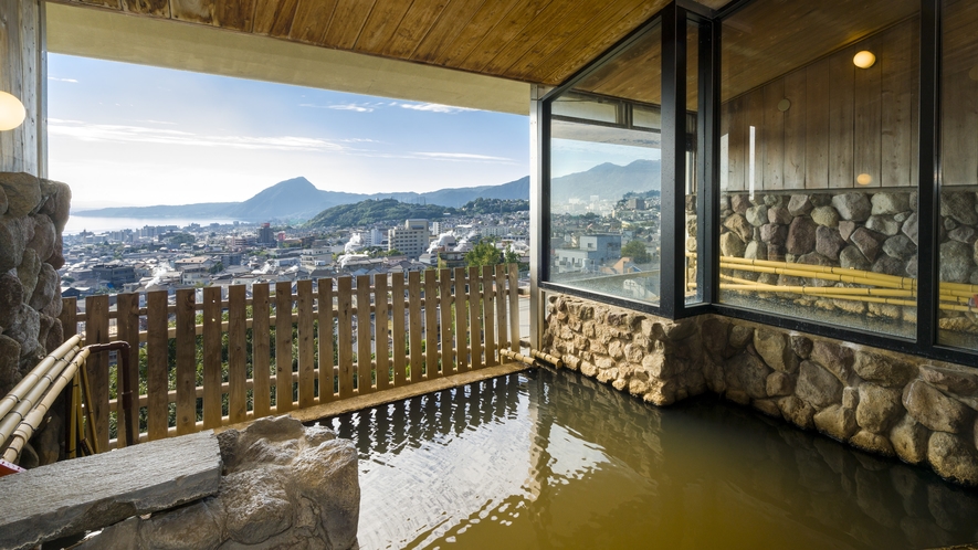 • 露天風呂からは、鉄輪らしい湯けむりの街並み
