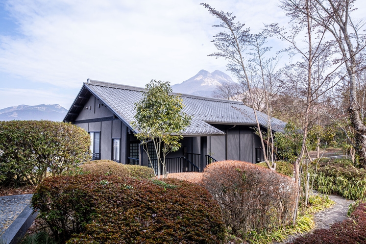 美星〜きらら〜は、由布院温泉街の喧騒から少し離れた、由布岳を正面に望む場所に位置する宿。街中とは異なる、静かな高台のような立地が魅力です。
